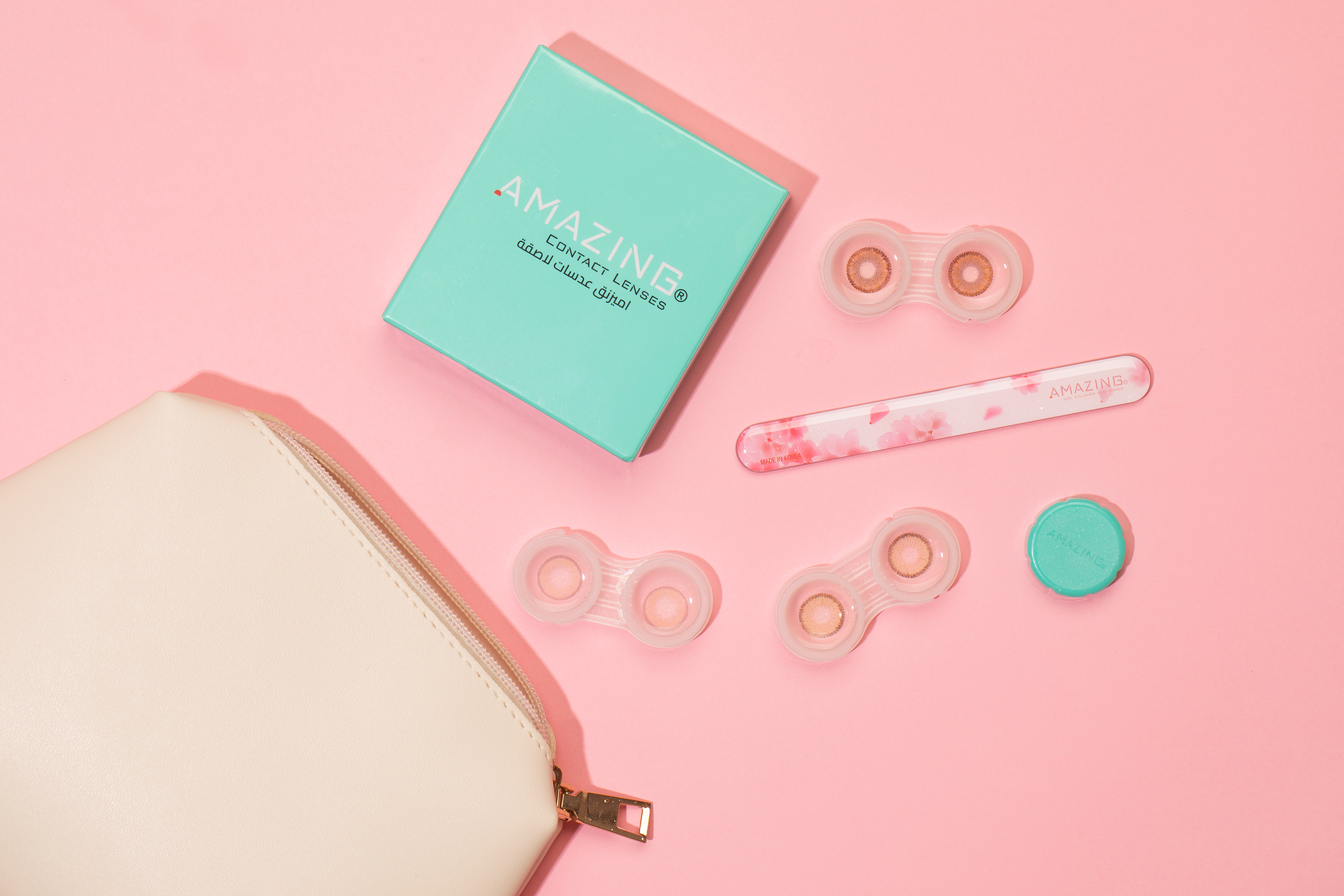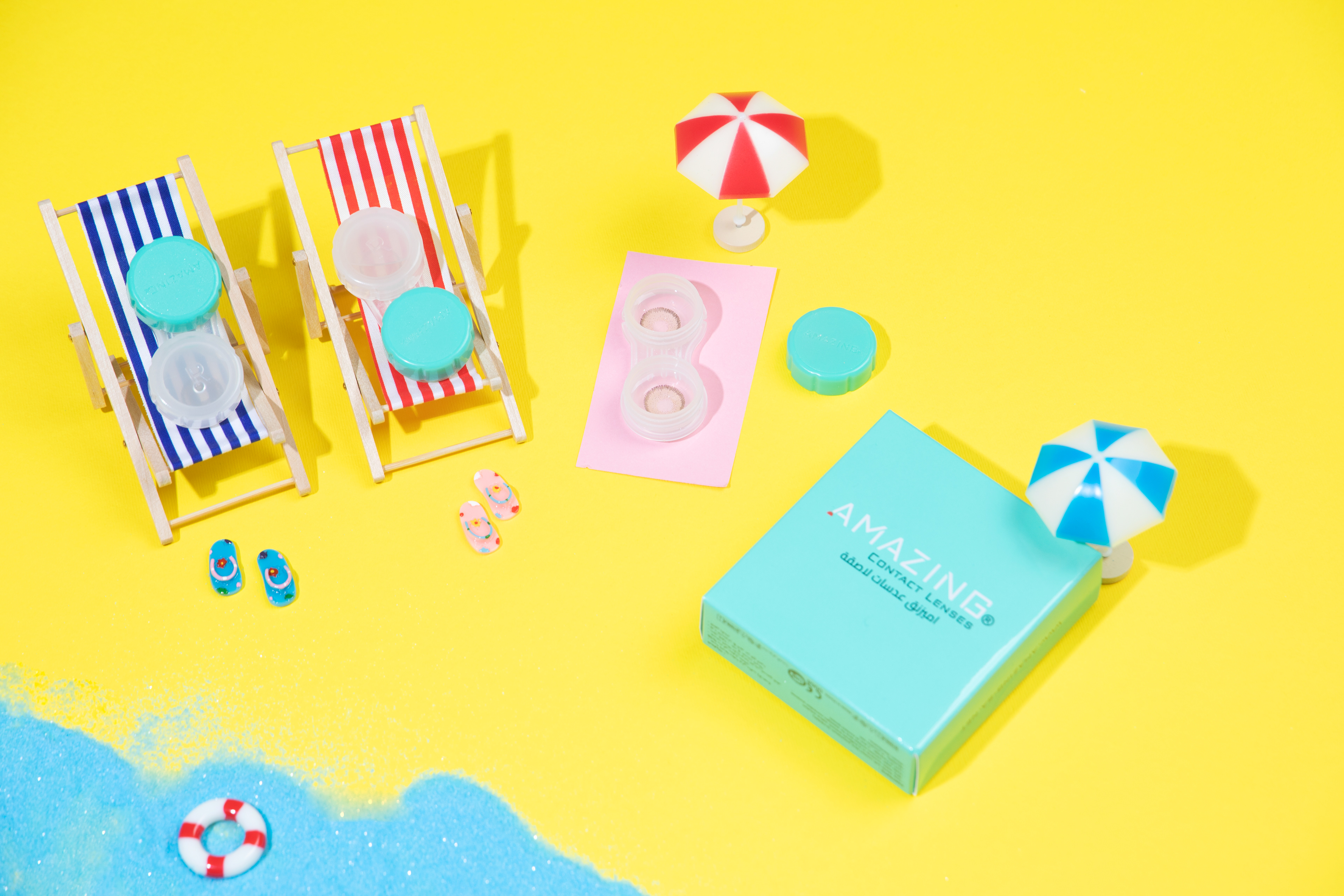 This shoot features “Amazing” lenses, with each image styled differently to create a diverse and engaging visual story. The use of bold, vibrant colors like yellow, pink, and Tiffany blue adds an energetic, eye-catching appeal, perfect for social media. Each photo captures the lenses in a unique setting, emphasizing their versatility and the fresh, modern styles they offer. The variety of colors and designs ensures that every post stands out and captures the attention of your audience