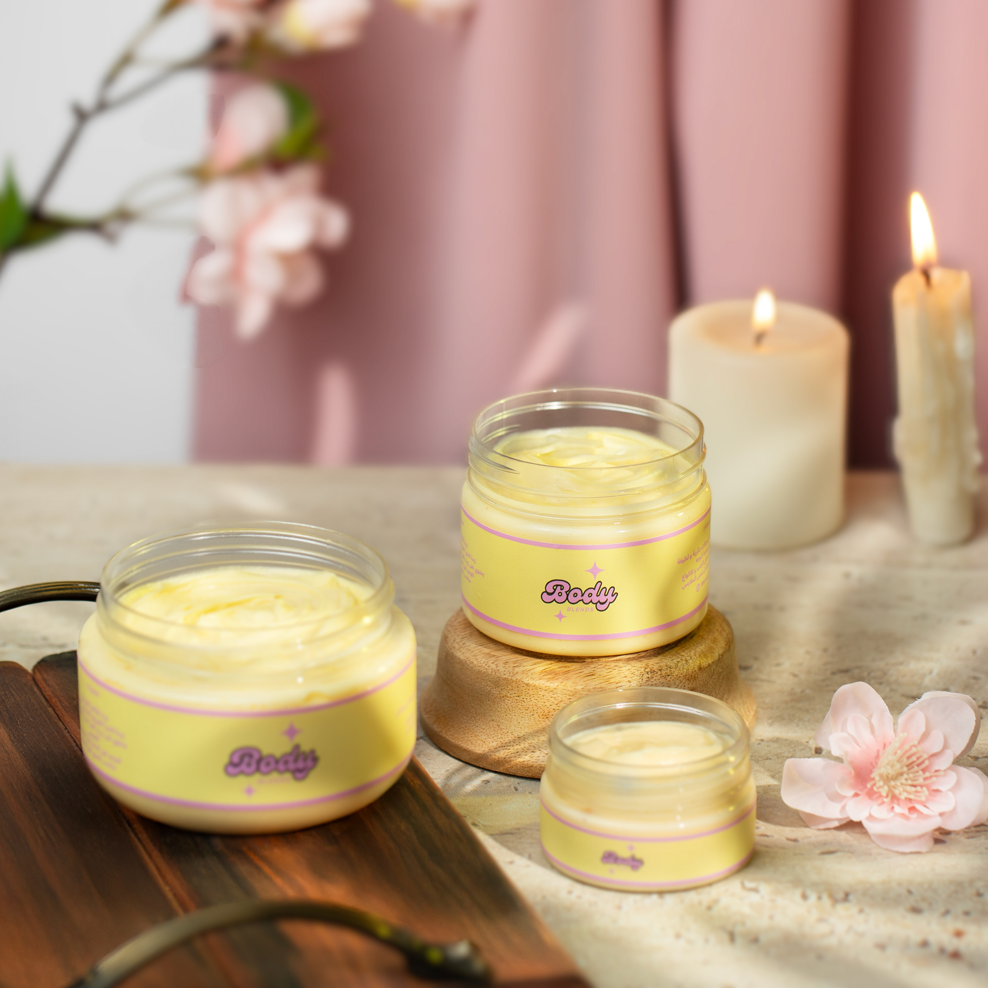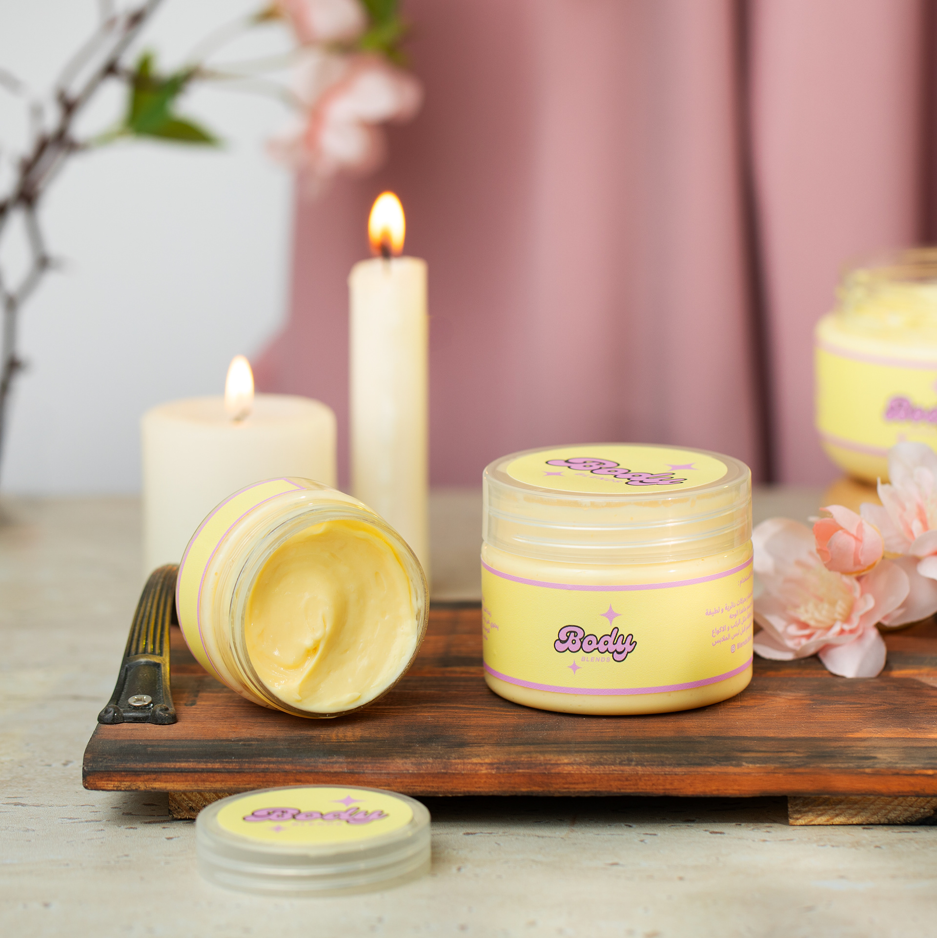 Set in a cozy, spa-like atmosphere with towels, candles, and warm lighting — evoking relaxation, self-care, and indulgence.