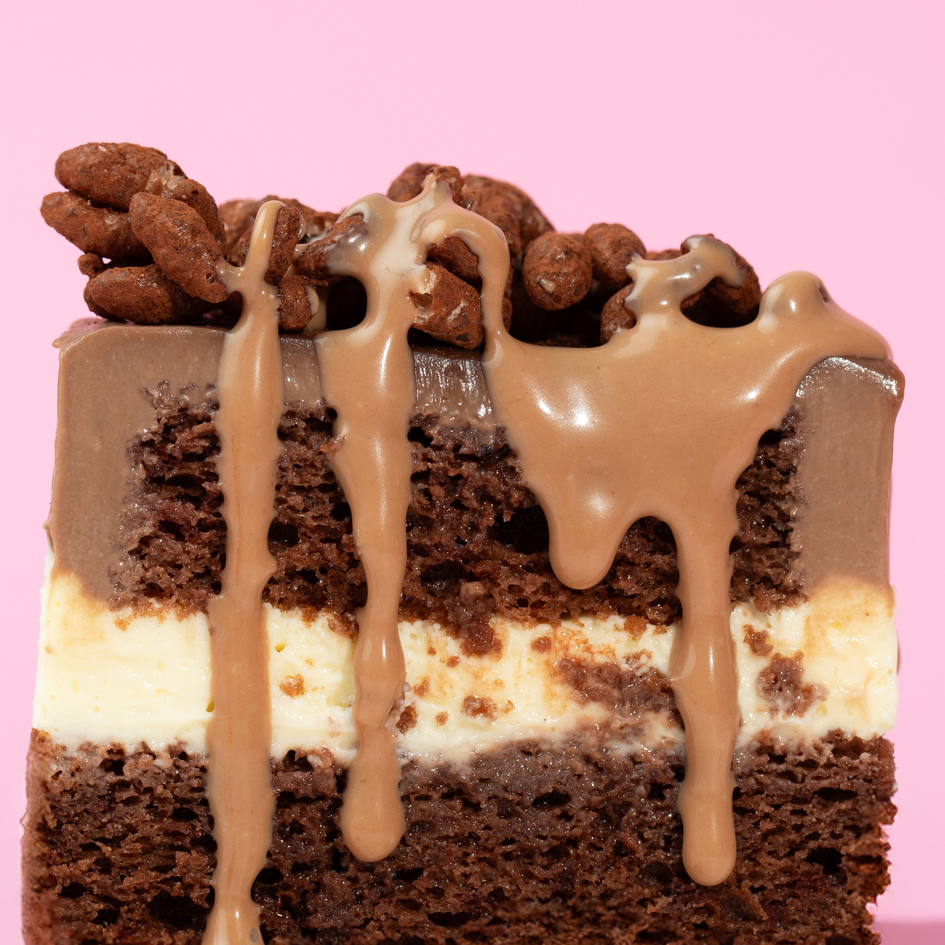 A close-up on rich, melting cake layers — a delicious mix of natural chaos and intentional beauty.